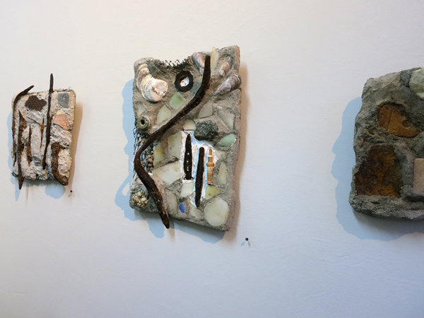 Kathy's show, at Michael Mut Gallery on Avenue C, consists of both two dimensional and sculptural work. I was most drawn to her paintings and wall-mounted mosaics so those are the pieces I'm featuring here.